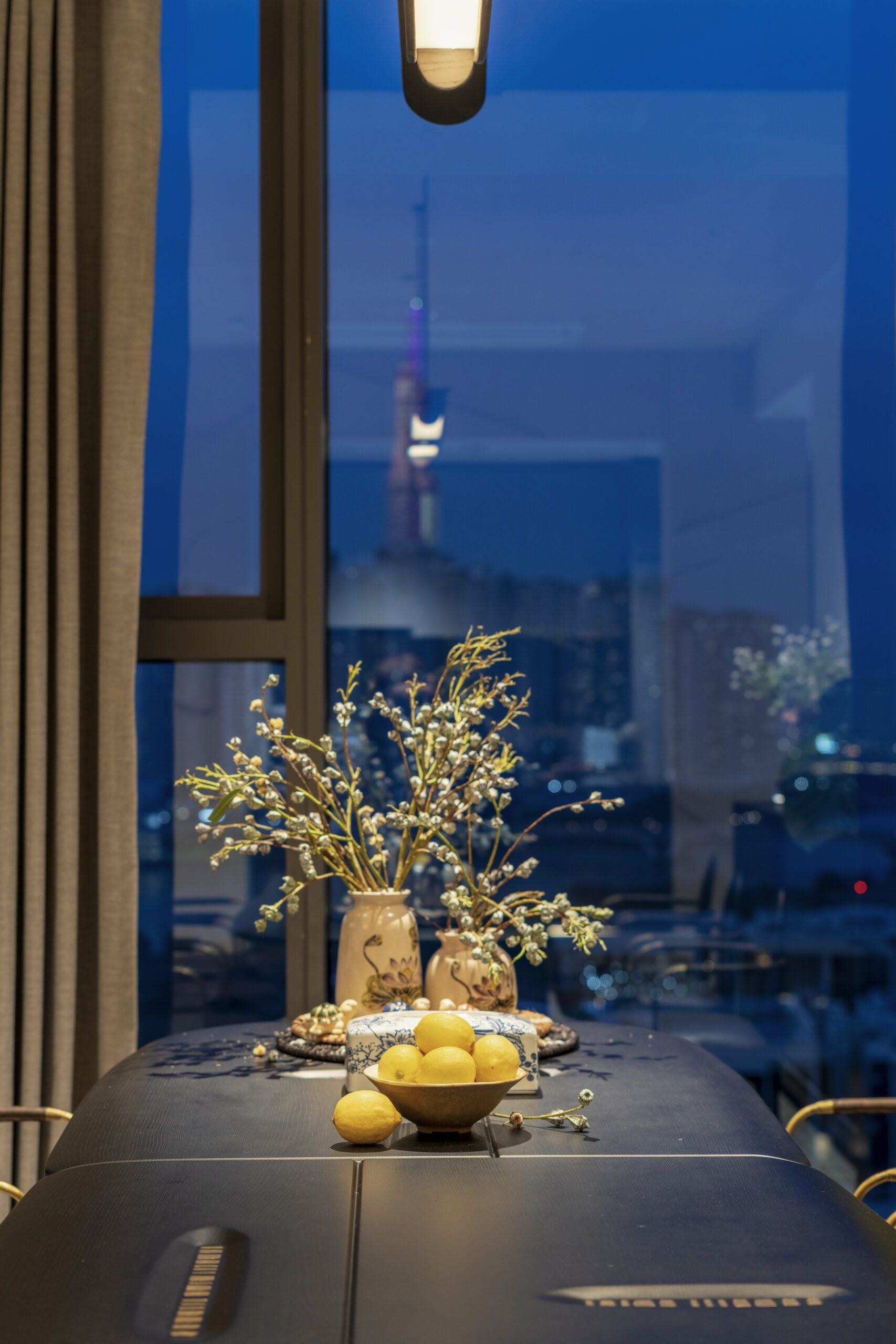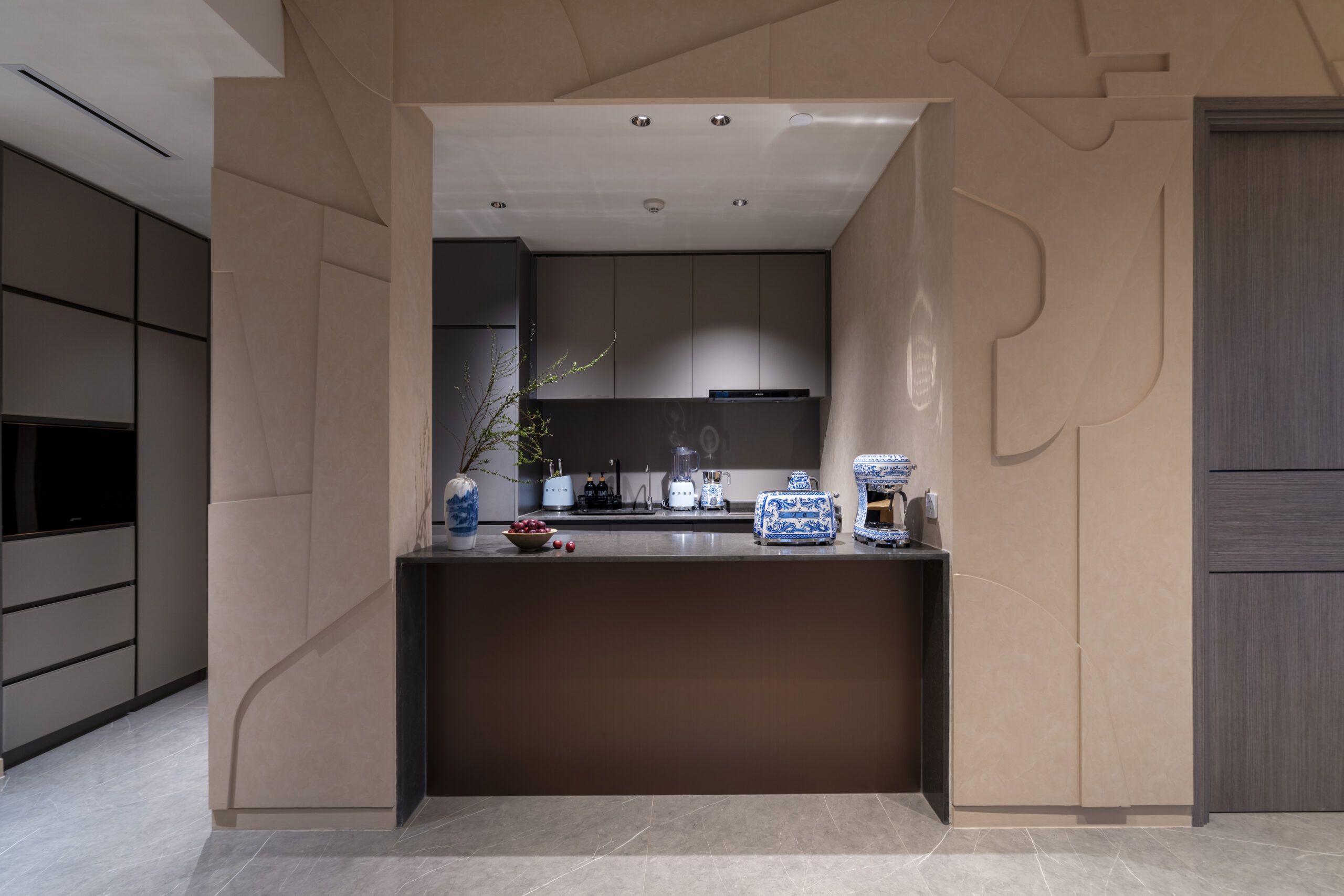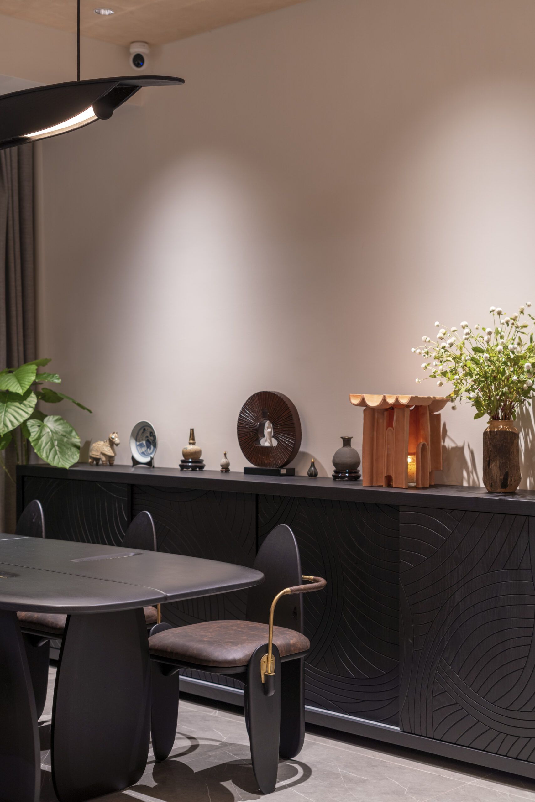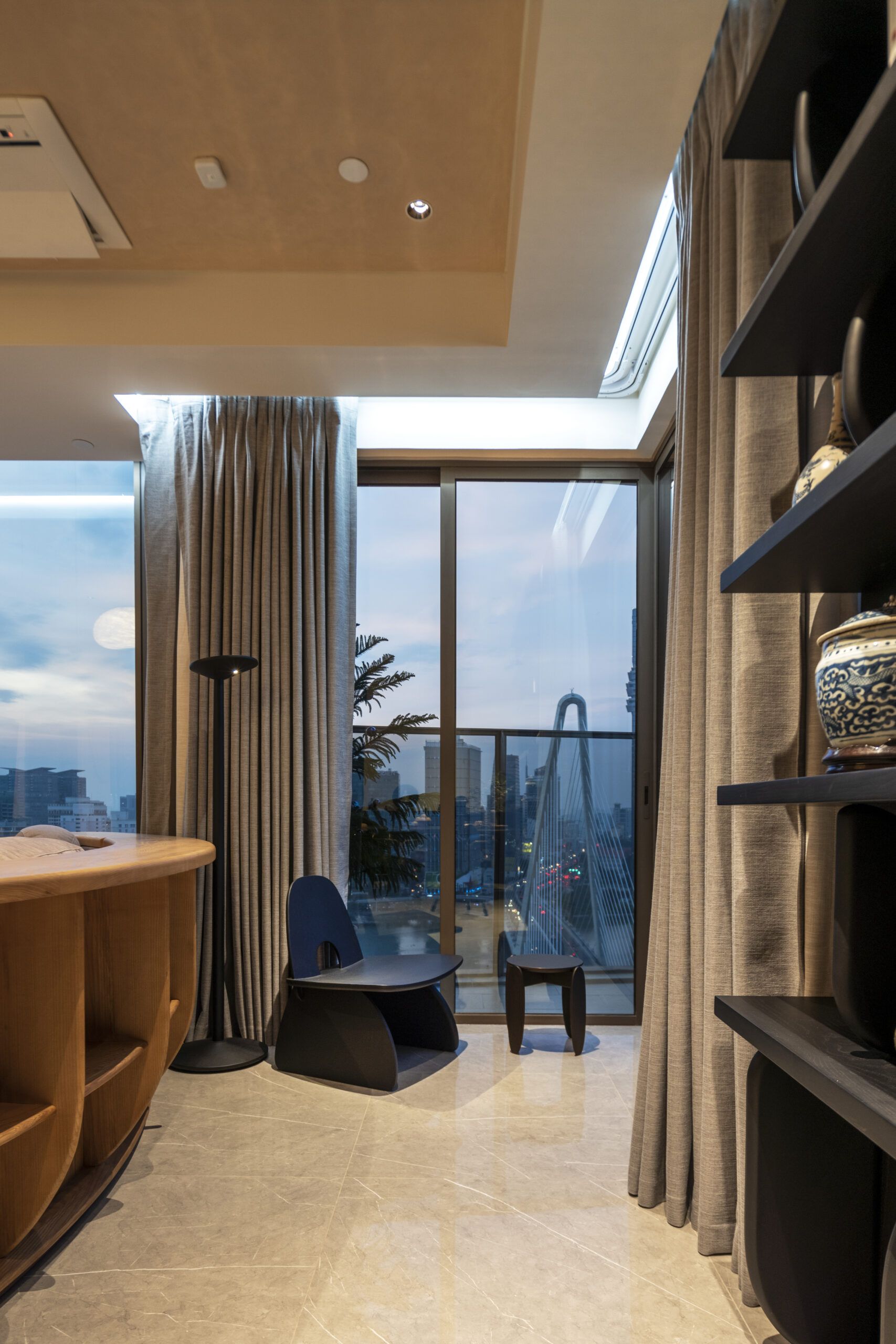 Our work is imbued with artistry, featuring bespoke lighting designs inspired by the moon. The centerpiece of the living room—a crescent moon chandelier—symbolizes transformation and unending creativity. In the children’s bedroom, a full moon wall lamp embodies completeness and tranquility, while the master bedroom is adorned with meticulously crafted stone-effect bedside lamps, bringing a natural yet luxurious touch to the space.