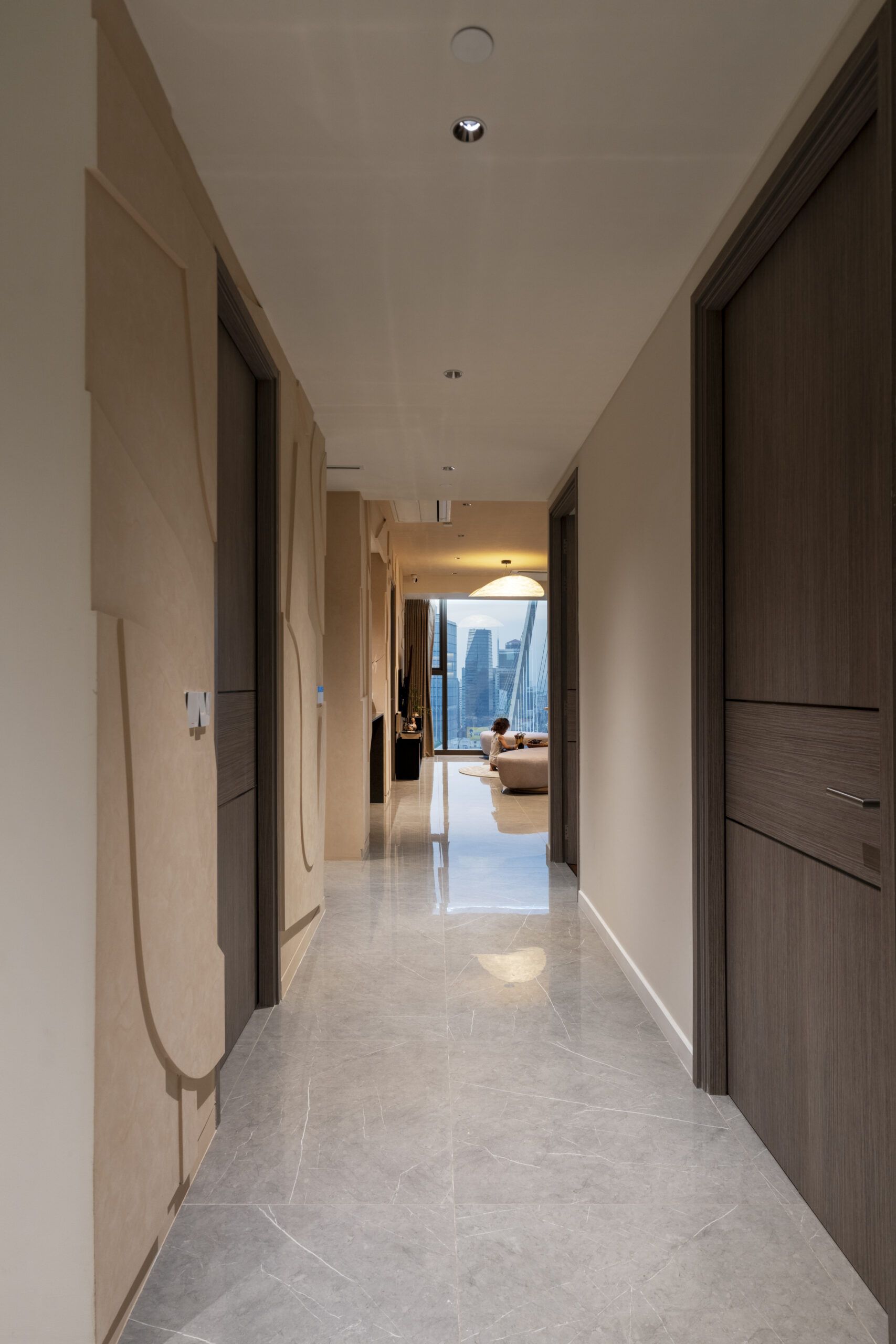 Ngoài hệ thống ánh sáng chính, chúng tôi còn chăm chút cho những không gian nhỏ hơn trong căn hộ, đảm bảo ánh sáng không chỉ hài hòa mà còn tạo chiều sâu và sự kết nối giữa các khu vực. Đặc biệt, đội ngũ LYK đã cá nhân hóa thiết kế ánh sáng phòng ngủ theo yêu cầu của gia chủ, tạo nên điểm nhấn riêng biệt và đầy phong cách.