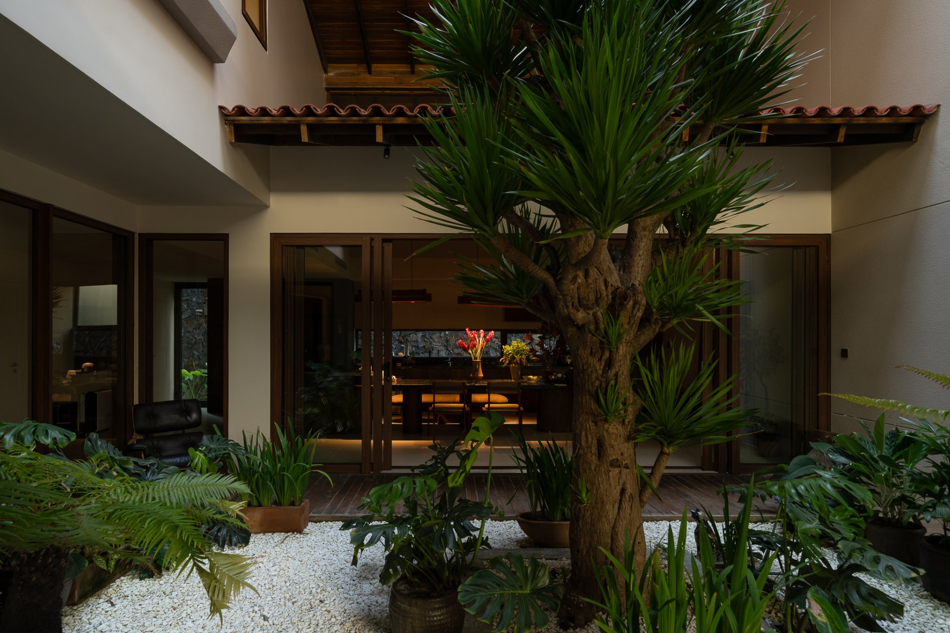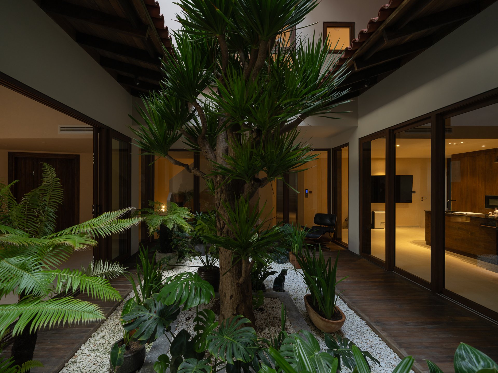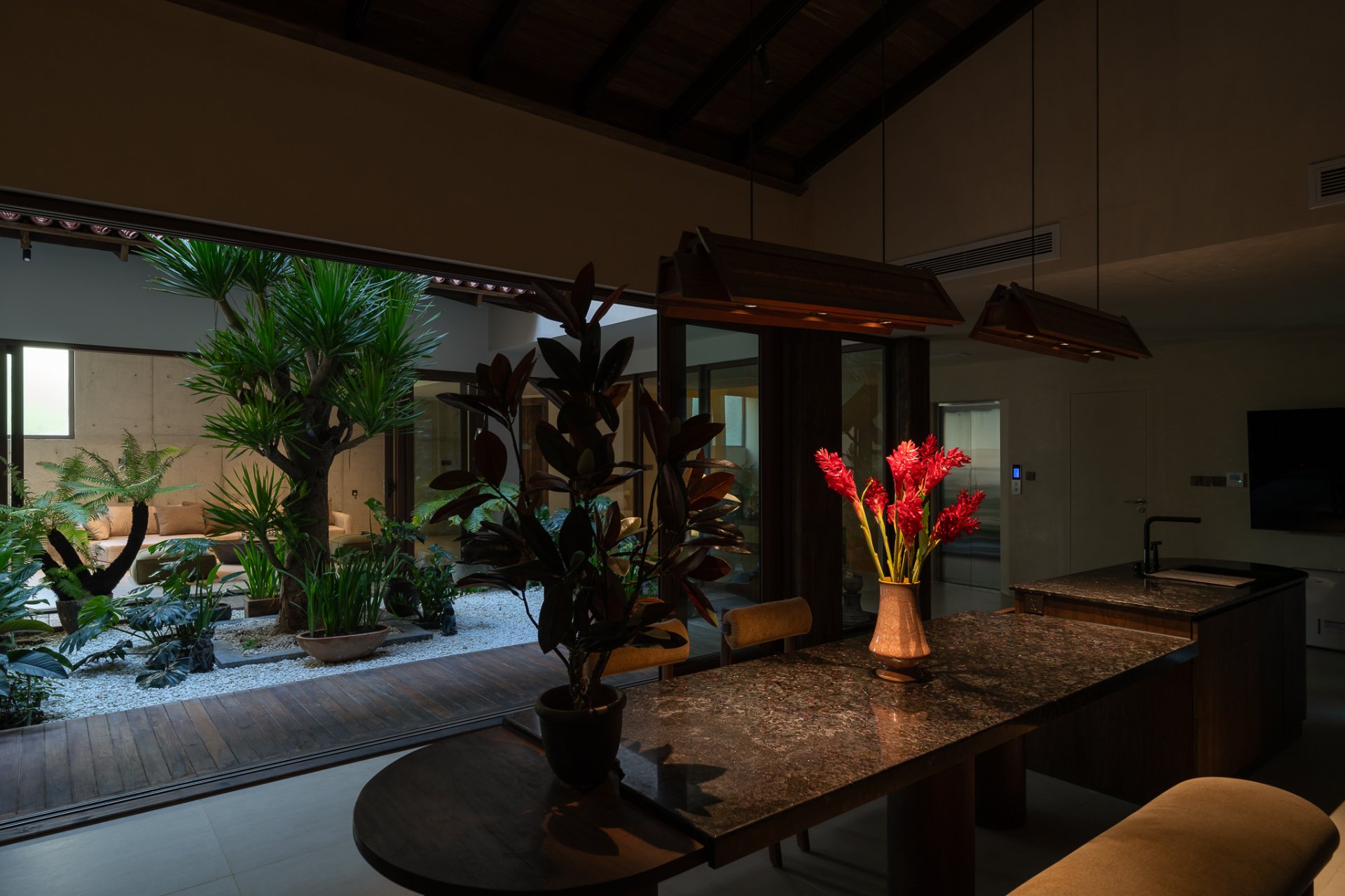 The structure of the house is designed with functional layers and an atrium, balancing light and ventilation while creating connectivity between spaces. The harmonious blend of natural light and LYK’s lighting system brings a well-lit living environment that still ensures the necessary privacy.
