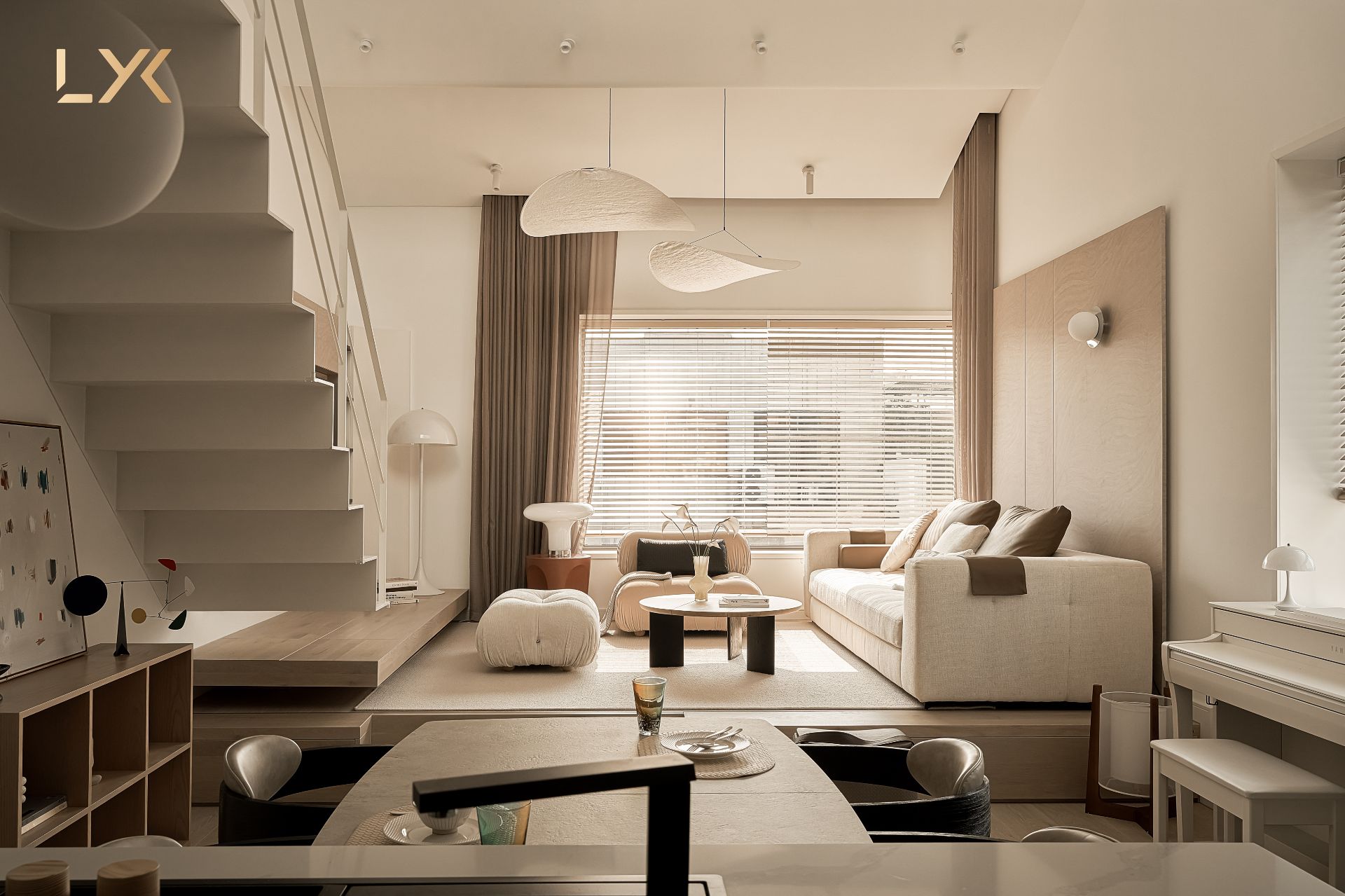 • Hiệu ứng: Tông màu trung tính (xám nhạt, kem, trắng ngà) có thể tương thích với cả ánh sáng ấm và lạnh, tùy thuộc vào mục đích sử dụng không gian. Giúp không gian trở nên linh hoạt hơn, dễ dàng thích nghi với các chức năng khác nhau.