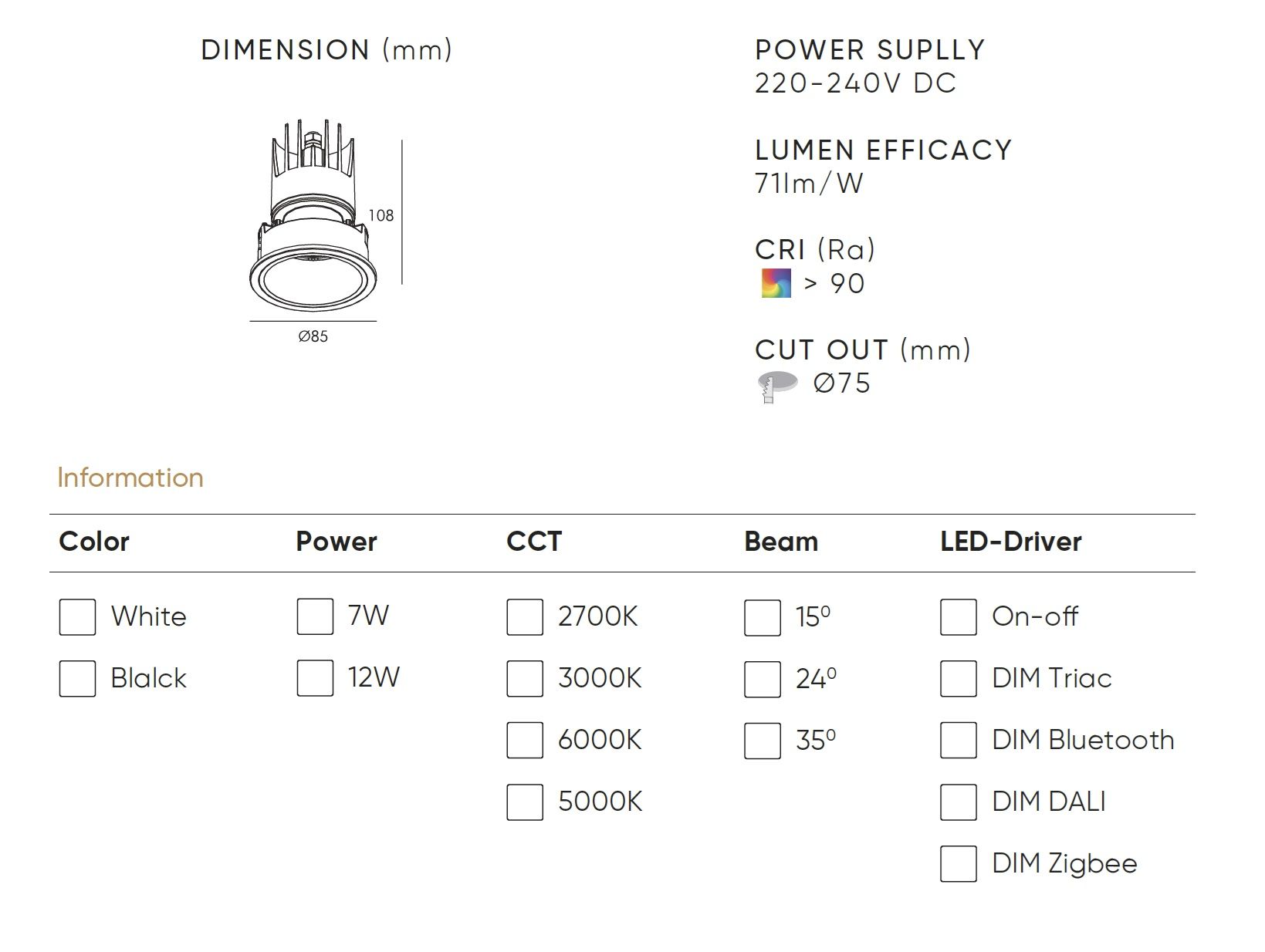 DIM: On-off / DIM Triac / DIM Bluetooth / DIM DALI /DIM Zigbee