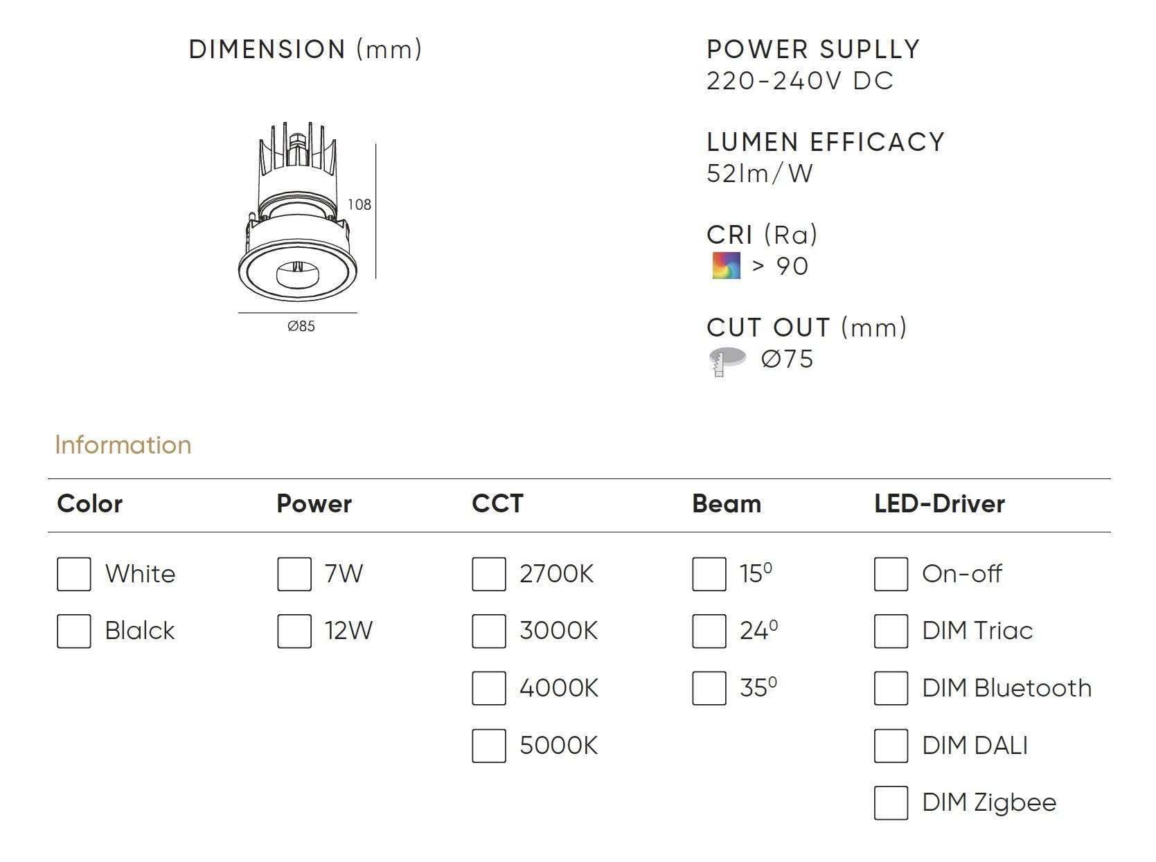 DIM: On-off / DIM Triac / DIM Bluetooth / DIM DALI / DIM Zigbee