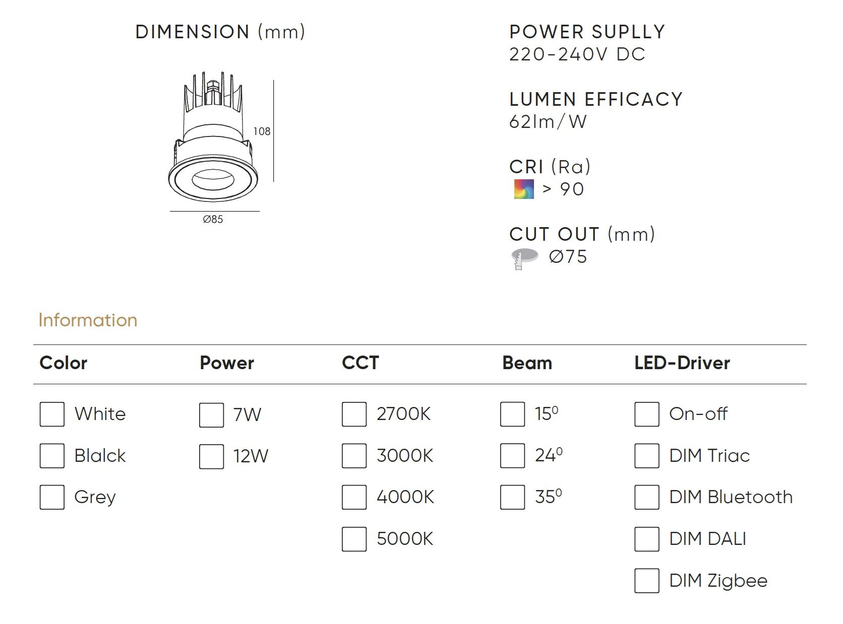 DIM: On-off / DIM Triac / DIM Bluetooth / DIM DALI / DIM Zigbee