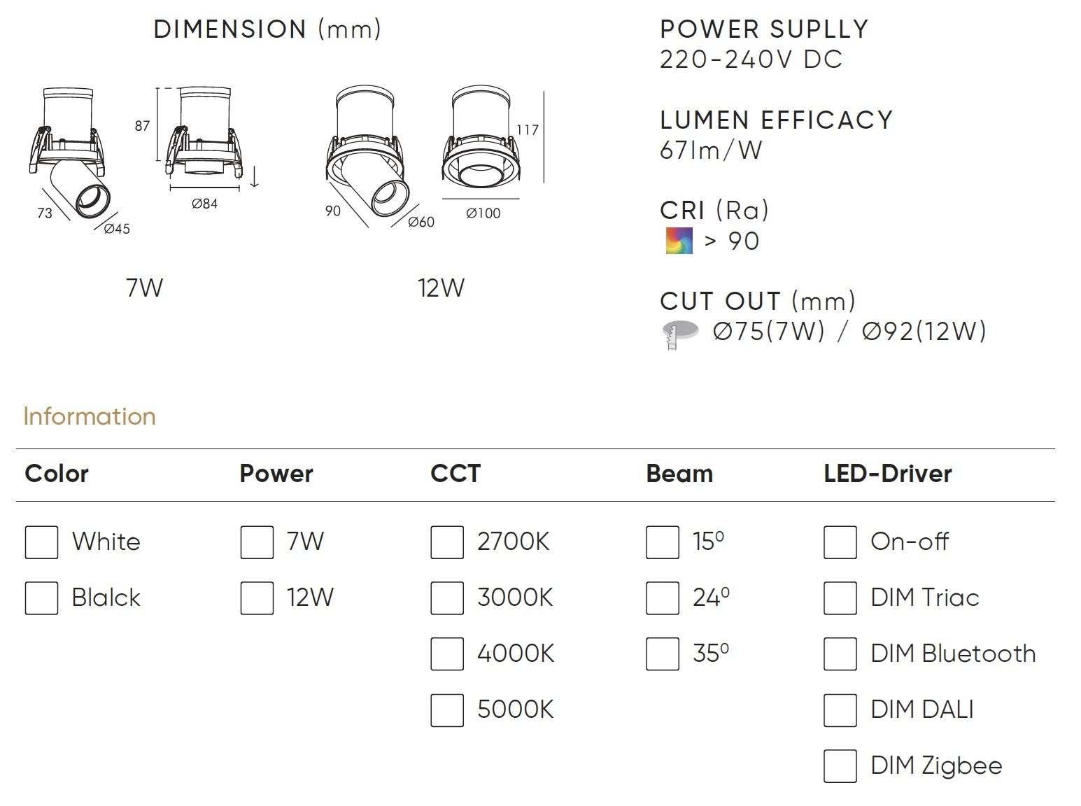 DIM: On-off / DIM Triac / DIM Bluetooth / DIM DALI /DIM Zigbee