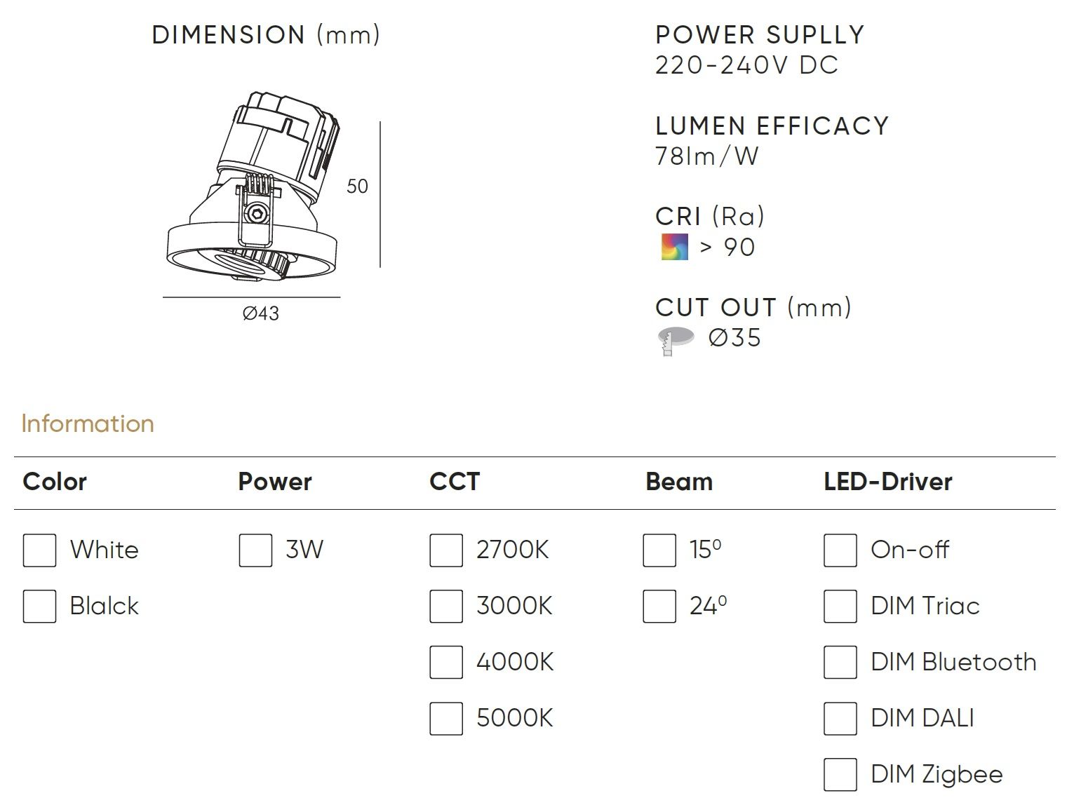 Cường độ sáng: 2700k |3000K |4000K|5000K