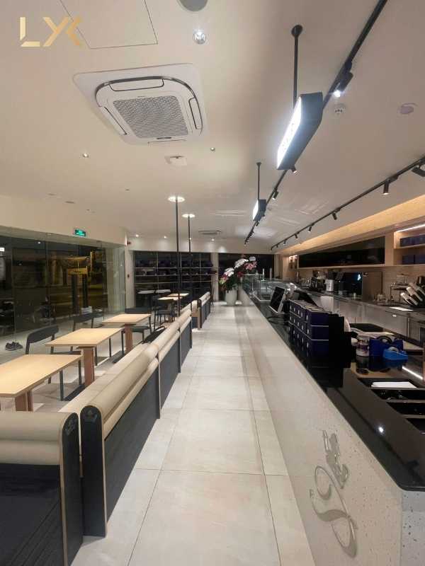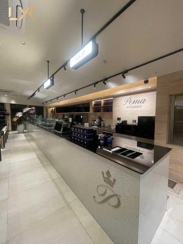 Lighting elements were integrated across service counters, seating areas, and architectural surfaces. A combination of spotlights, recessed fixtures, and indirect lighting creates layered illumination, adding depth and visual interest throughout the interior.